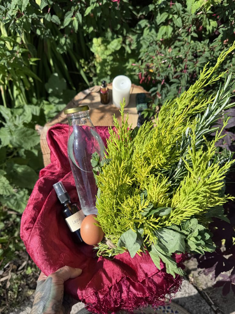 Key elements of the ritual include sweeping the body with aromatic herbs, the smoke of Copal resin and an unbroken egg. The process is supported by channeled prayers and invocations, to call in ancestral wisdom, divine protection and guidance. Offerings are made to the body & the Earth, to conclude the ritual in gratitude and reciprocity.