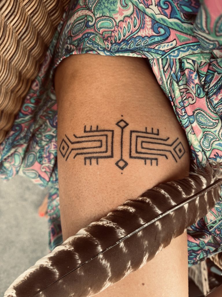 The ancient Maya created tattoos with the intention to adorn spiritual & physical protection & empowerment upon the wearer. Deities of worship, sacred symbols & animal guides were commonly chosen to be etched on skin, through a slow ritual process which involved painting the designs onto the skin with ink, followed by making incisions. Sacred markings would be given at times of crossing thresholds and the placement on the body would be carefully considered for spiritual significance & empowerment. They symbolised the declaration of claiming one’s identity, beliefs & devotion through a courageous rite of passage.